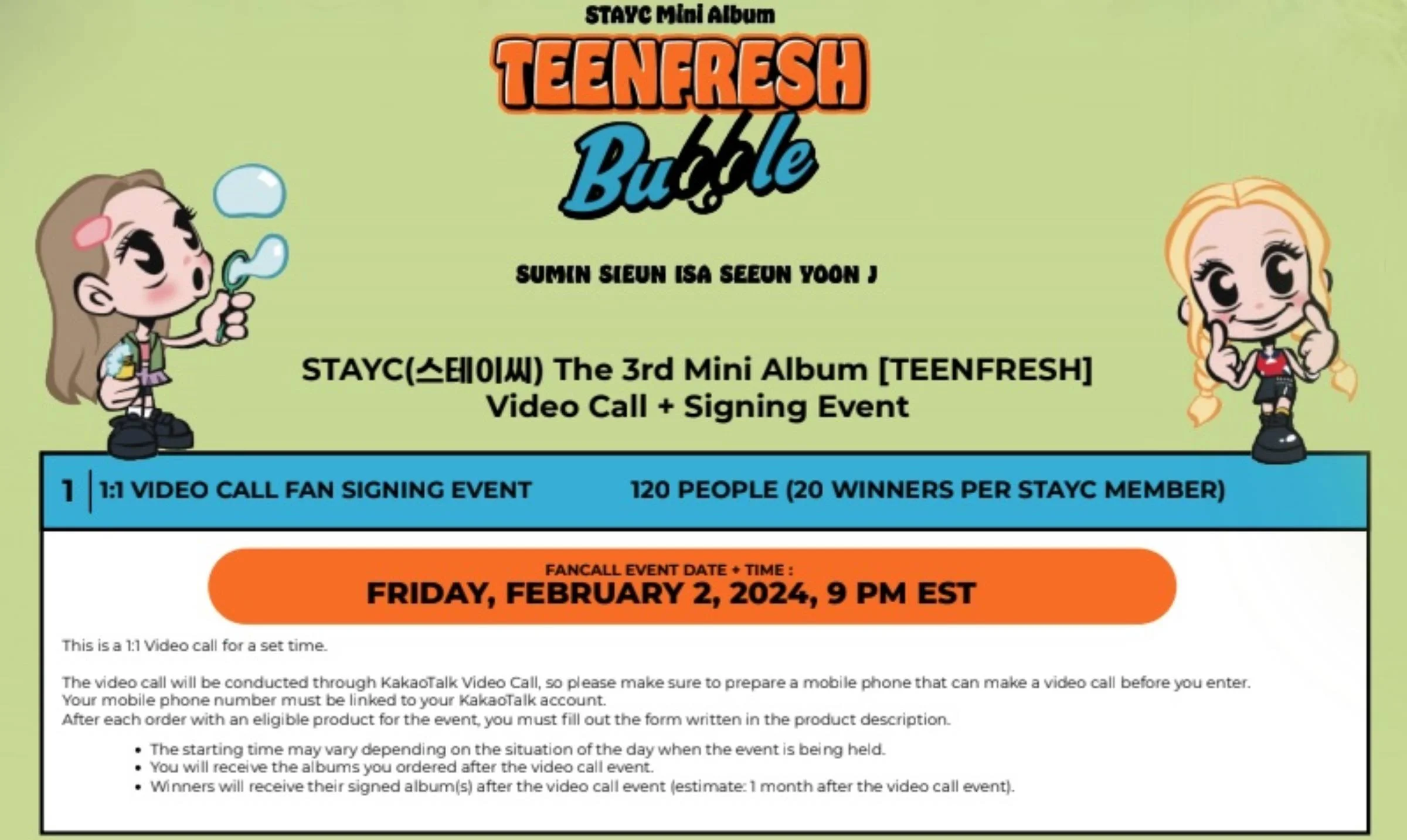 @lightupkshop We’re hosting a STAYC fancall event! Here’s a bit of a run down #kpop #stayc #fancall #kpopfansign #kpopshop #kpopstore #kpopevent #photocard #greenscreen ♬ Bubble - STAYC