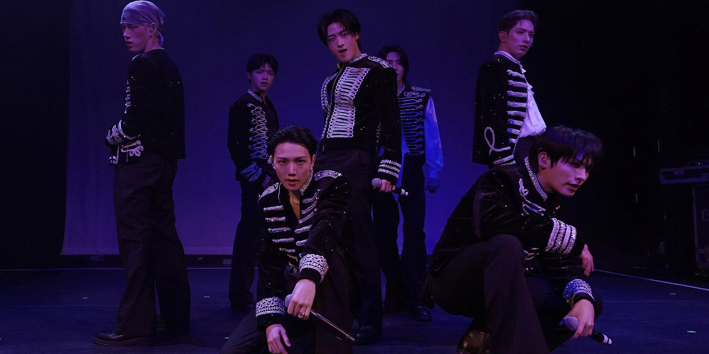 Amongst the smoke, the members arose out of the mist and light onto the stage, as a video on the backdrop had the hands of a clock clicking the seconds behind them. Opening with “WAO WAO,” the guys burst onto the stage full-out with their powerful choreo kicking off with a full body flip by Youmin that had jaws dropping before there was even time to digest what was happening. The energy was next level from the start. Whether it was from the sexy vibes with Xayden and Hyunbin’s flow, the overall vocals highlighted by the “golden maknaes” ON:N and Kunho, or the fluid double and triple pirouettes, the opening stage showed just how all in and ready they were for this show. “READY 2 RUMBLE” was a stage that nobody was really ready for. Playing with the boxing motifs and body rolls, the the guys showed their impressive vocal steadiness despite the full on execution of their choreography.