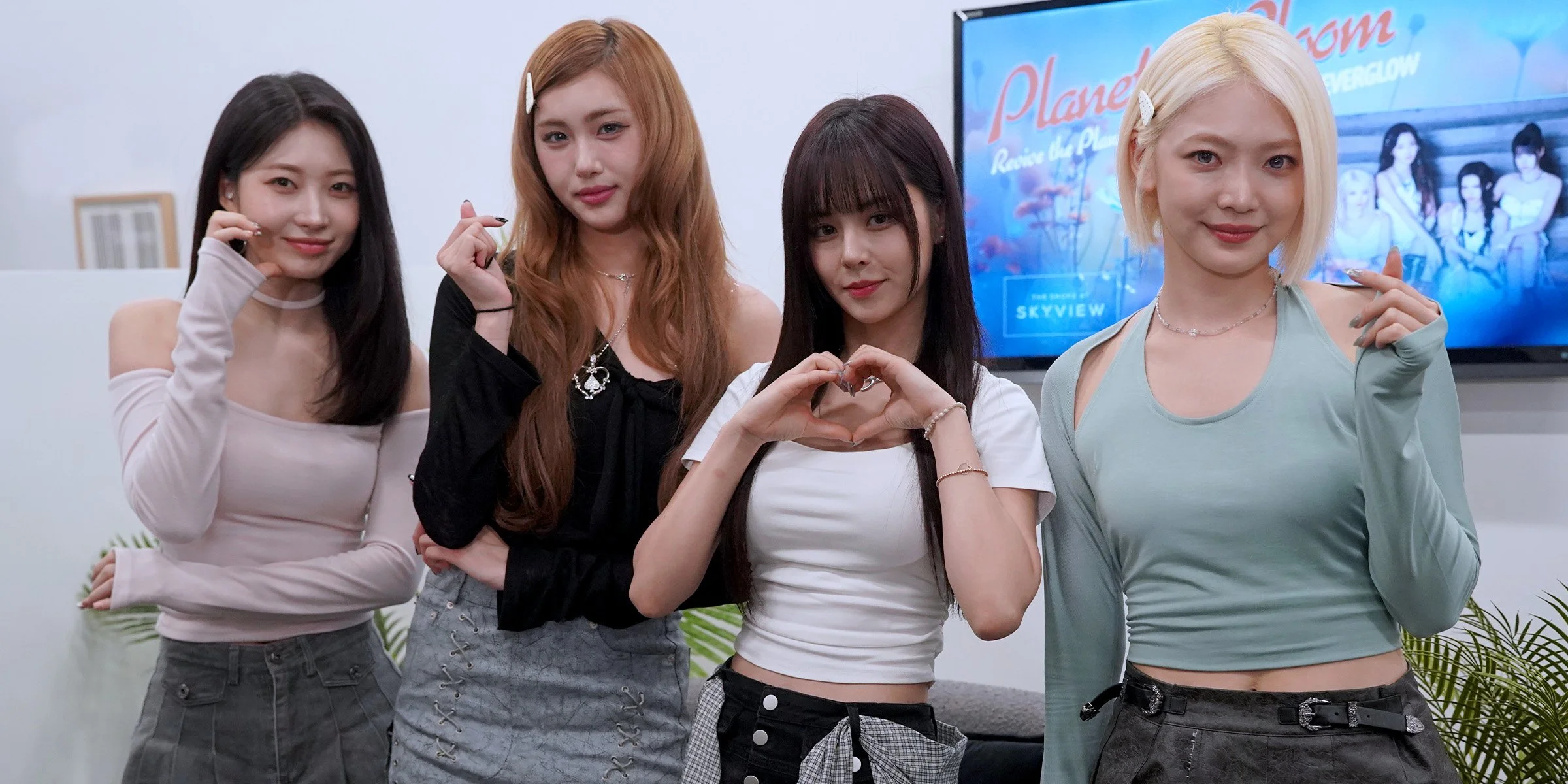 EVERGLOW is back in New York and ahead of their concert on April 17, they participated at The Shops at Skyview Mall’s Earth Day event. Though Earth Day technically takes place on April 22, Skyview took advantage of the occasion on April 15 to create a day of events focused on art, fashion, makeup, charity and awareness. With the event, the quartet made of Sihyeon, E:U, Onda and Aisha participated in interviews with the public and with select media speaking about their group, their faves from their latest EP, New York, the environment, and more.
