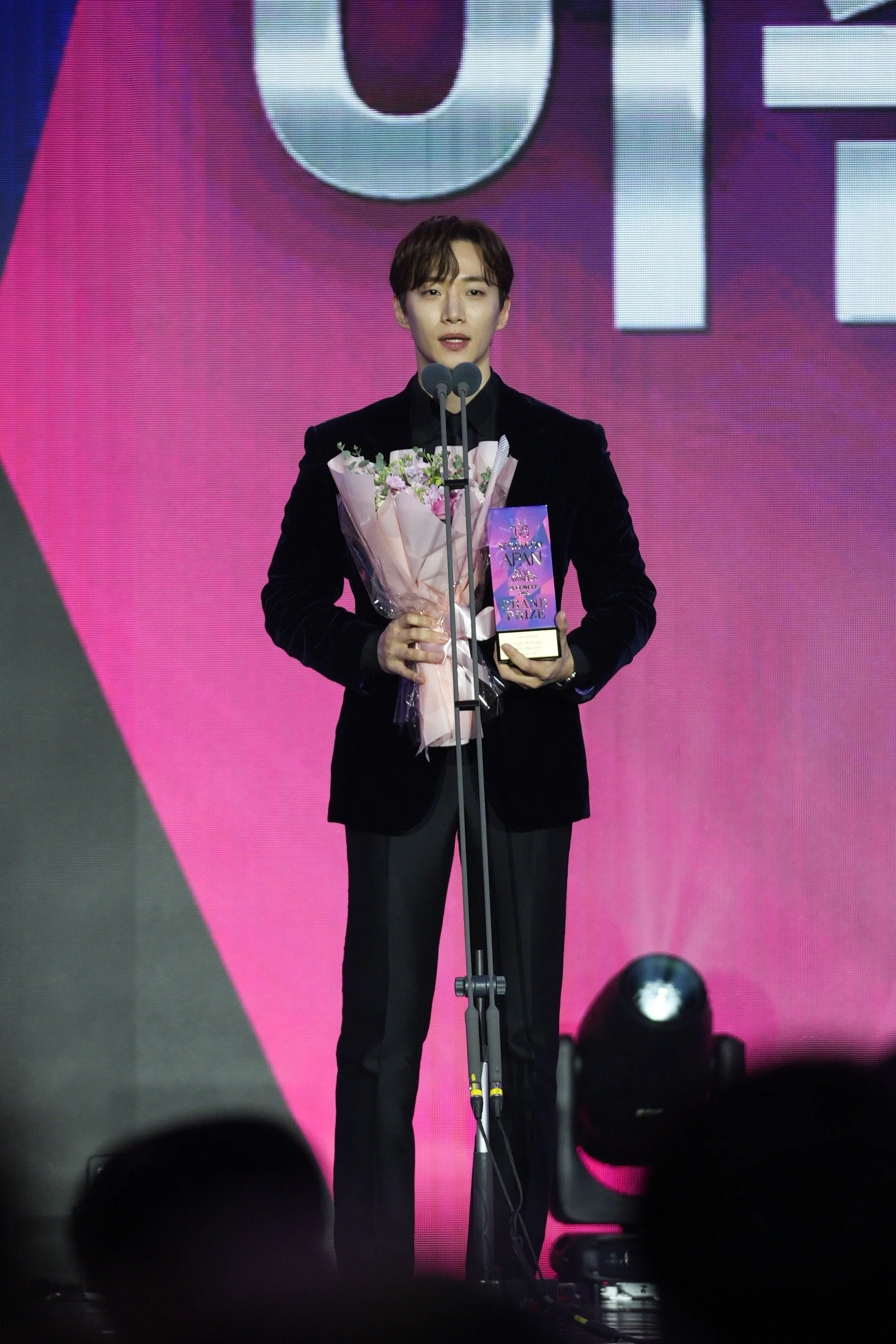 K-Drama star Lee Junho from Netflix series King the Land accepting his Grand Prize acting award at SEOULCon APAN Star Awards on December 31 in Seoul, South Korea