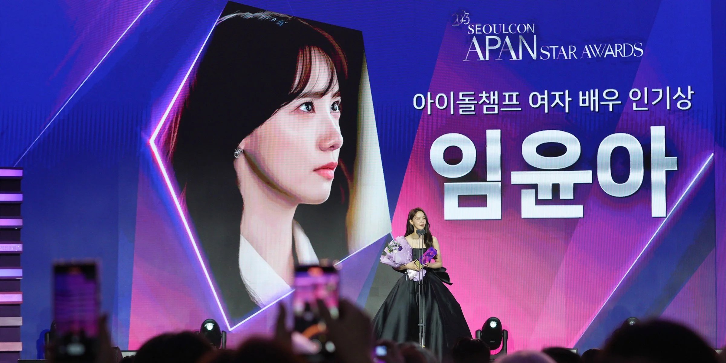 K-Pop star YoonA accepting her acting award from Netflix series King The Land at SEOULCon APAN Star Awards on December 31 in Seoul, South Korea